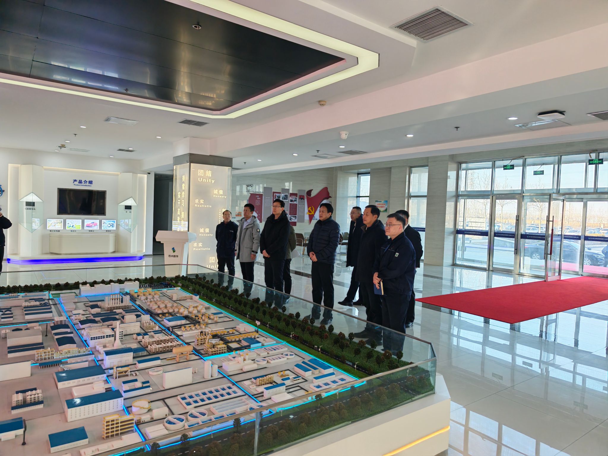在区长解洪涛的陪同下,学院一行先后赴胜华新能源科技(东营)有限公司、东营时代零碳产业园项目、山东大业新材料有限公司、山东垚坤模具有限公司进行实地走访。在工厂车间和生产一线,调研团队详细了解企业生产运营、技术创新及自动化升级需求,与企业负责人围绕学生就业教学实习实践、联合开展技术攻关和项目合作等议题展开现场交流沟通。